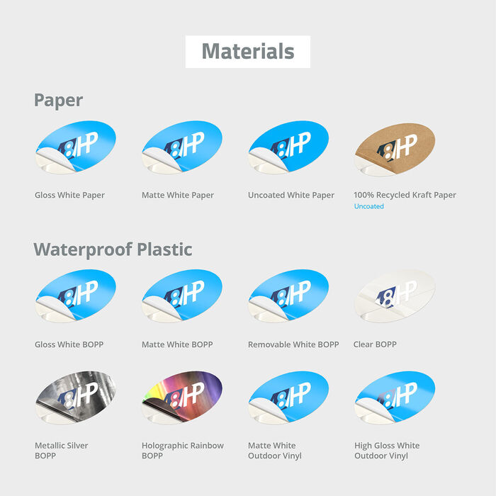 Create professional merchandise by branding them with your logo. When you order custom stickers online, you can choose from a wide range of materials to suit your requirements. Whether you need indoor-friendly options like white sticker paper or weatherproof adhesives like white BOPP, online sticker printing lets you create the best stickers for any job.