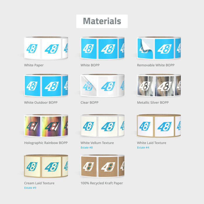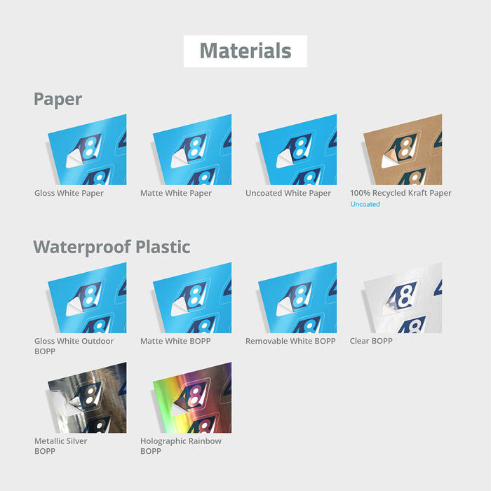 - White BOPP is our most durable sticker material. It’s thick, weatherproof, and comes with a UV-resistant glossy coating that makes it the best choice for outdoor applications.